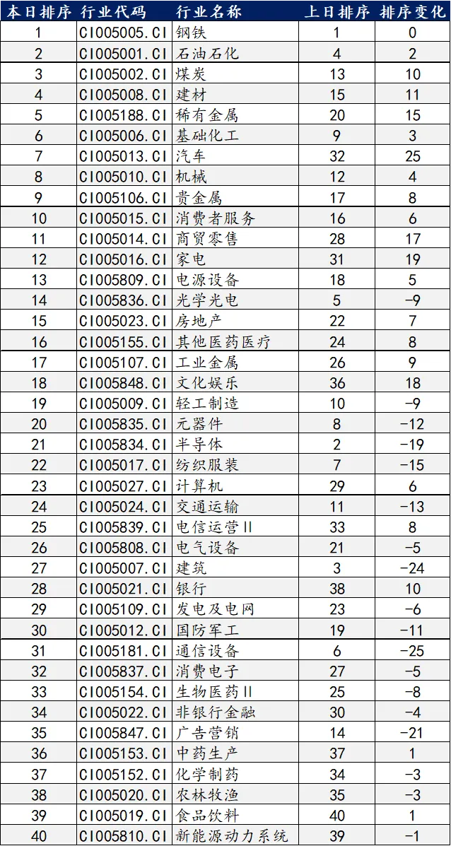 考虑开盘买入,持有上日前8行业,本日收益率为0.27%,行业平均为0.14%,超额收益为0.13%。