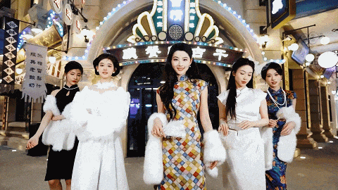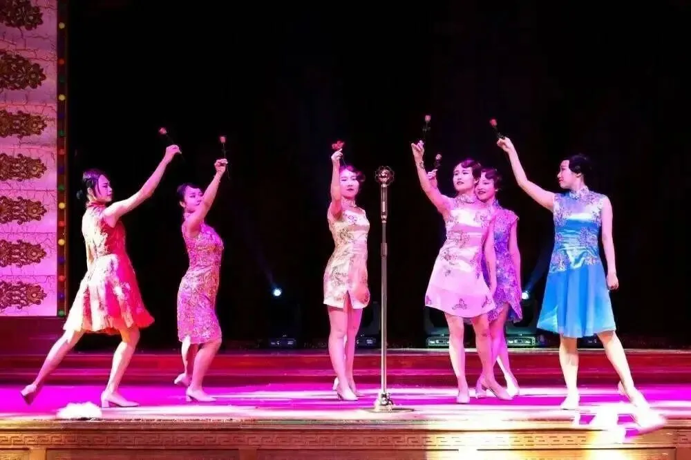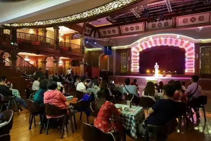 在台下悠闲的看着旗袍美女人唱歌跳舞