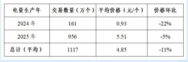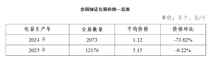 根据广州电力交易中心提供的数据,2026年1月12日-1月18日,广州电力交易中心平台绿证交易1117.28万个,较上周环比增加21%;交易均价4.85元/个,较上周环比降低11%。2026年累计交易量2042.38万个,交易均价5.11元/个。