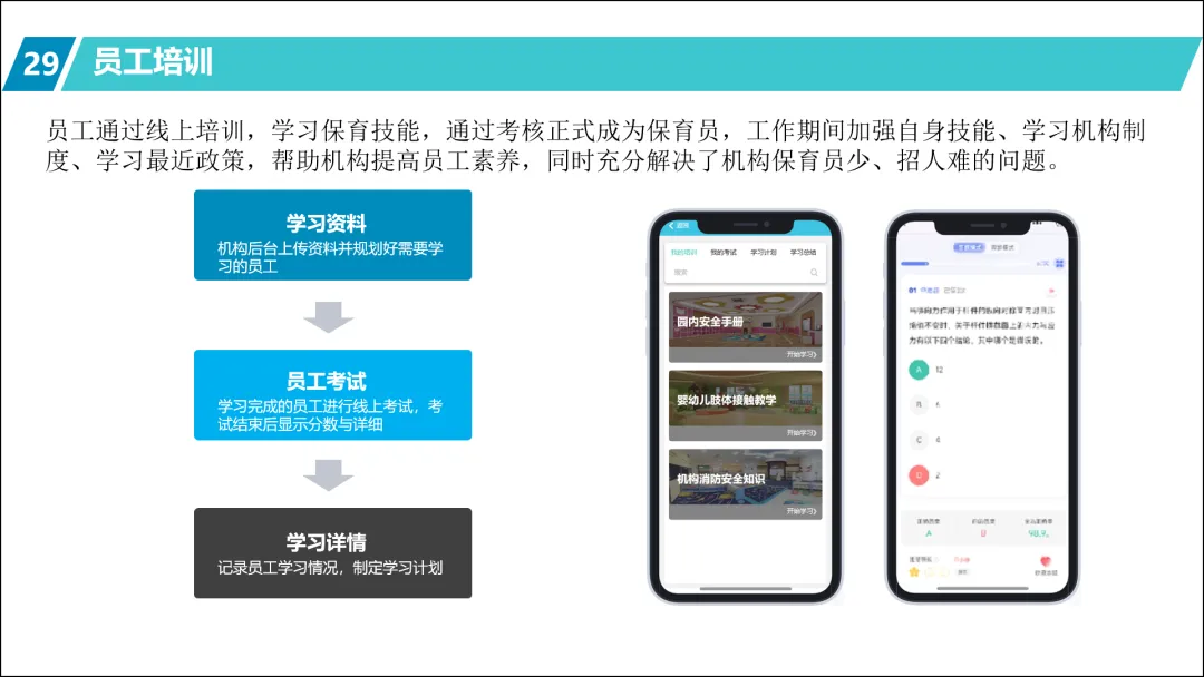 培训员工:对保育人员进行智慧系统操作和数据应用的专项培训,让他们能从数据中发现孩子的个性化需求。