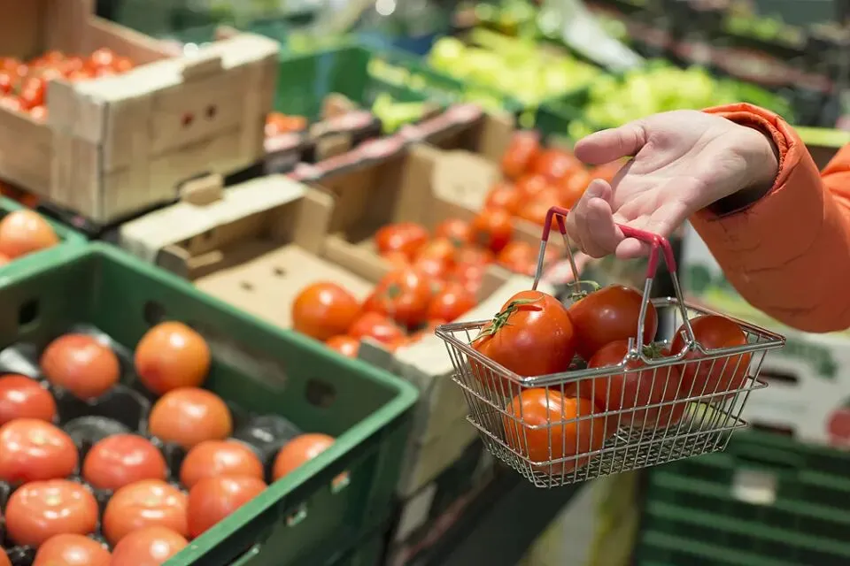 一家普通超市里,王女士拿起两个西红柿,看了一眼秤上的价格,犹豫了一下,又放下了。