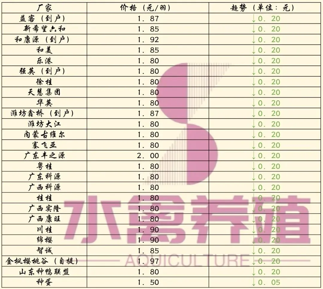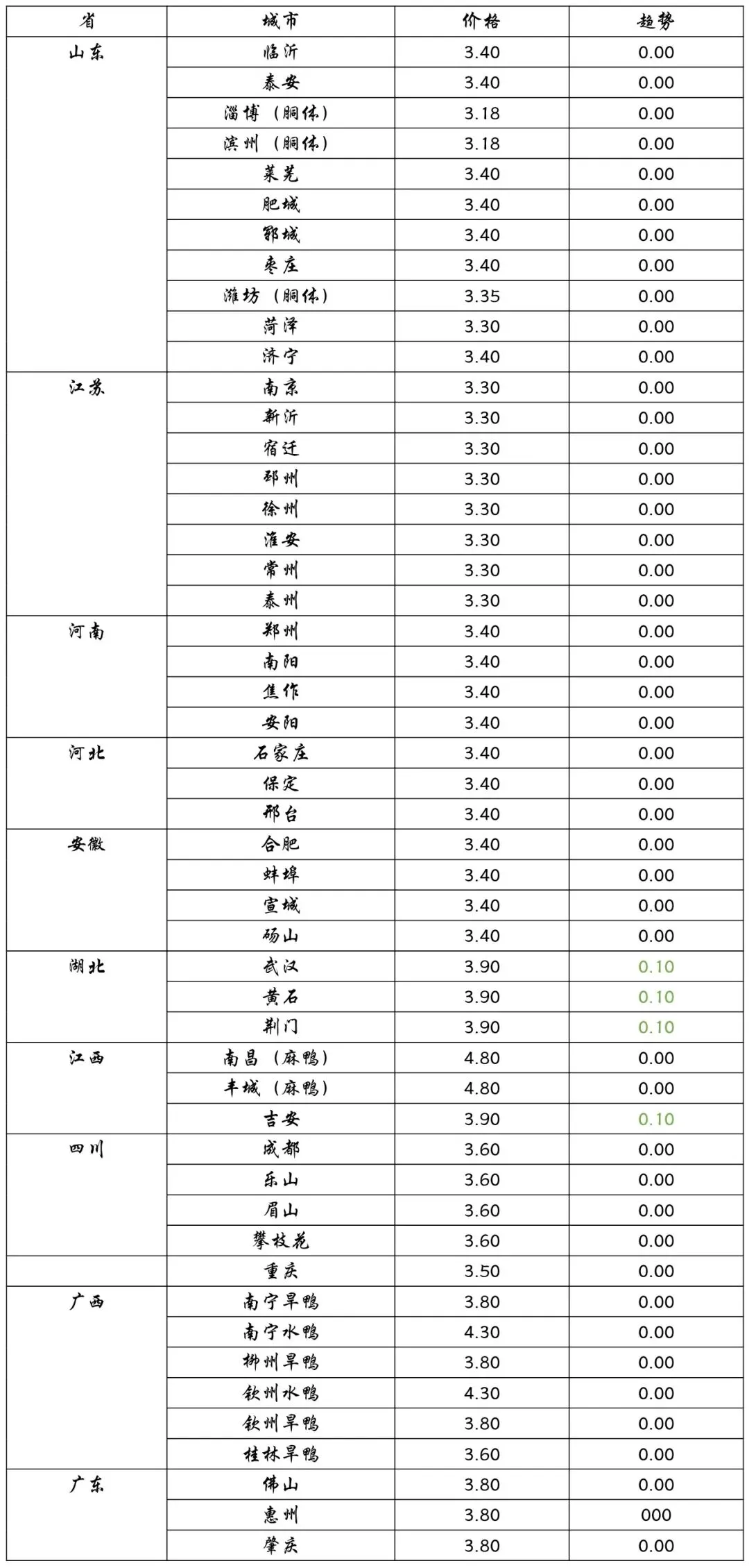 2026 . 1 . 29 肉鸡、鸡苗价格早知道