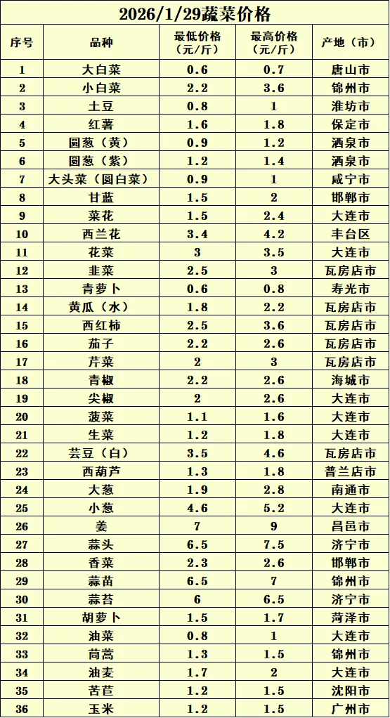 上述表格统计为市场蔬菜批发区间价格,仅供参考。