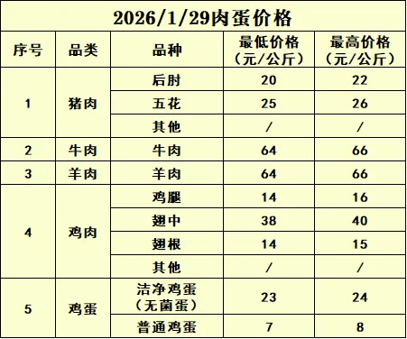 2026.1.29日鸡参考鸡蛋价格