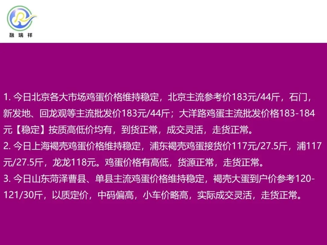 来广营蛋价格183 稳