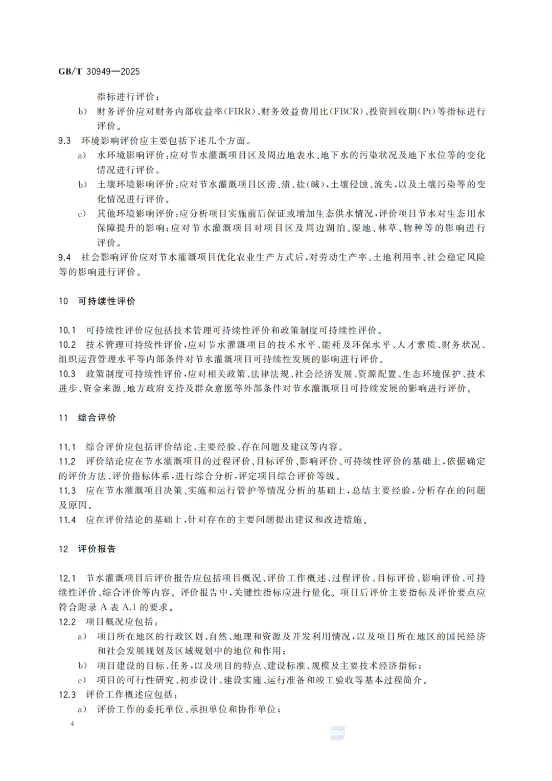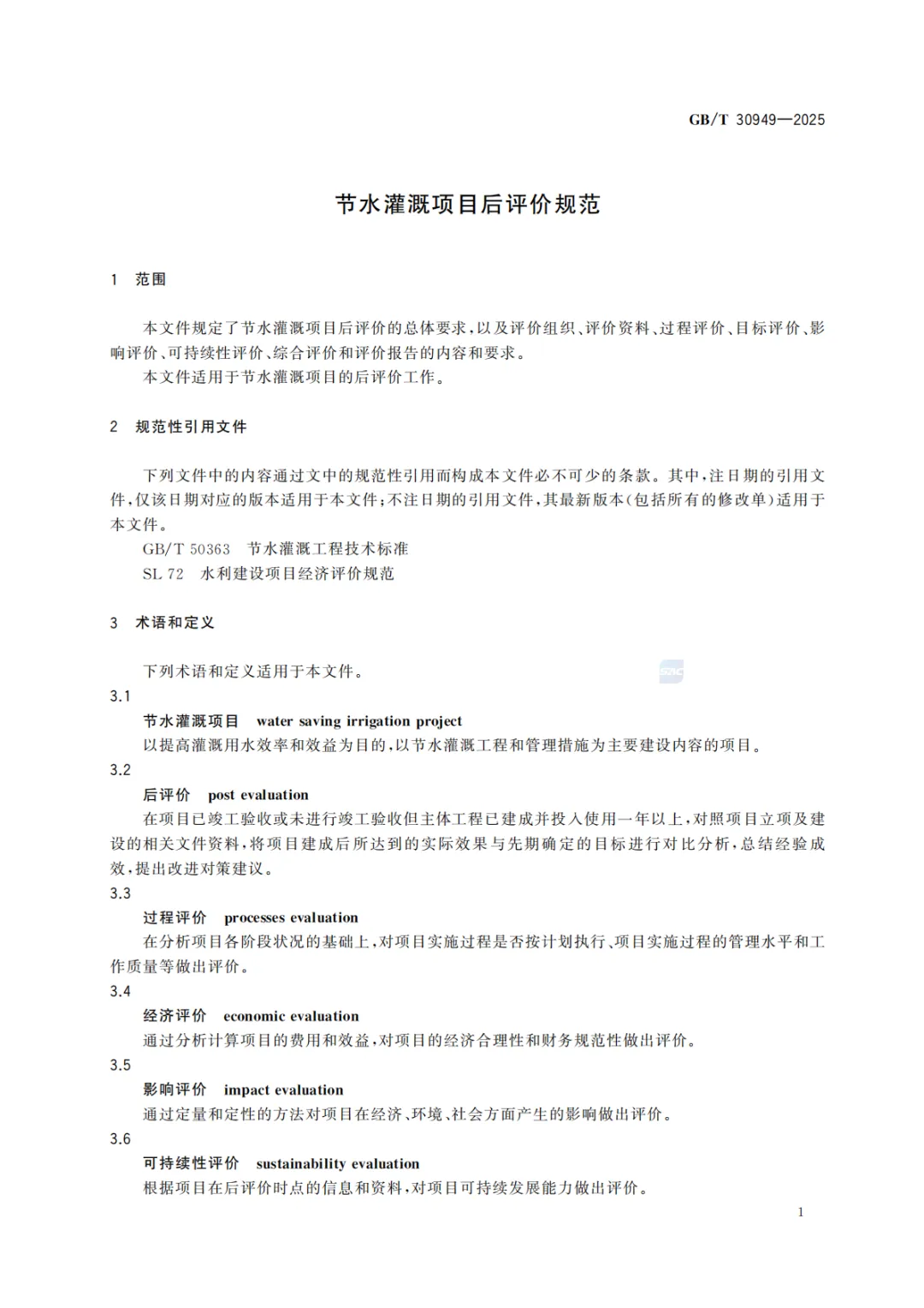 国家标准《节水灌溉项目后评价规范》GB/T 30949—2025