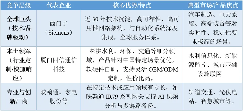 表5:智能网关不同竞争层级代表企业的核心特征
