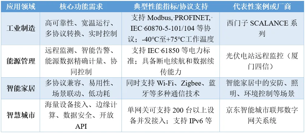 表9:智能网关主要应用领域的功能侧重与典型需求