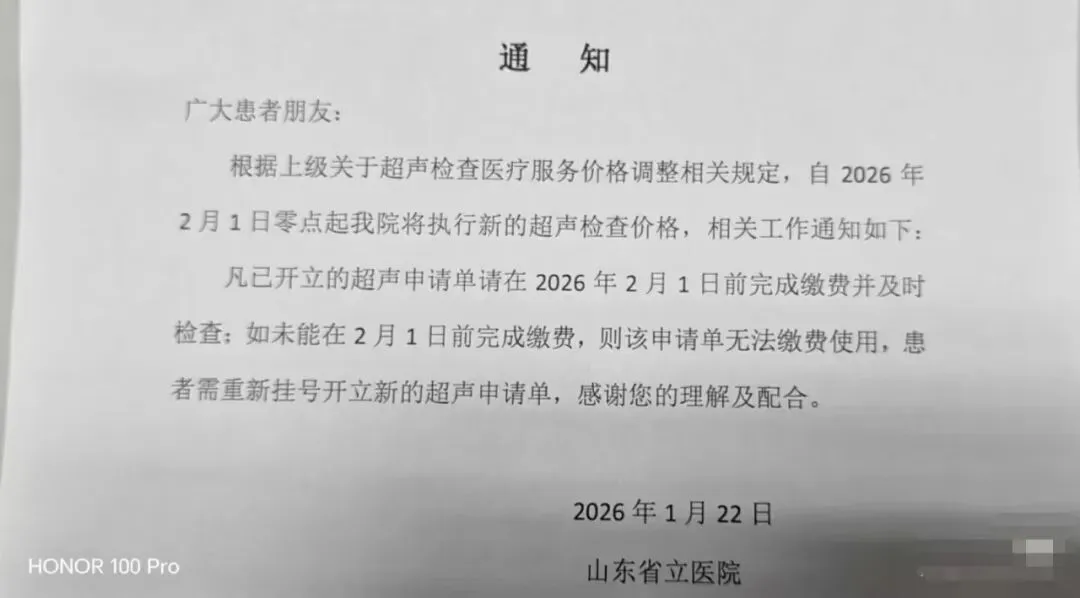 >通知!齐鲁医院和山东省立医院超声价格调整~