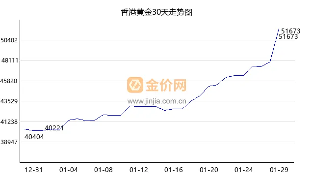 今日香港黄金上涨,现价51588 港币/两,今日开盘价50499,最高价52192,最低价50478。