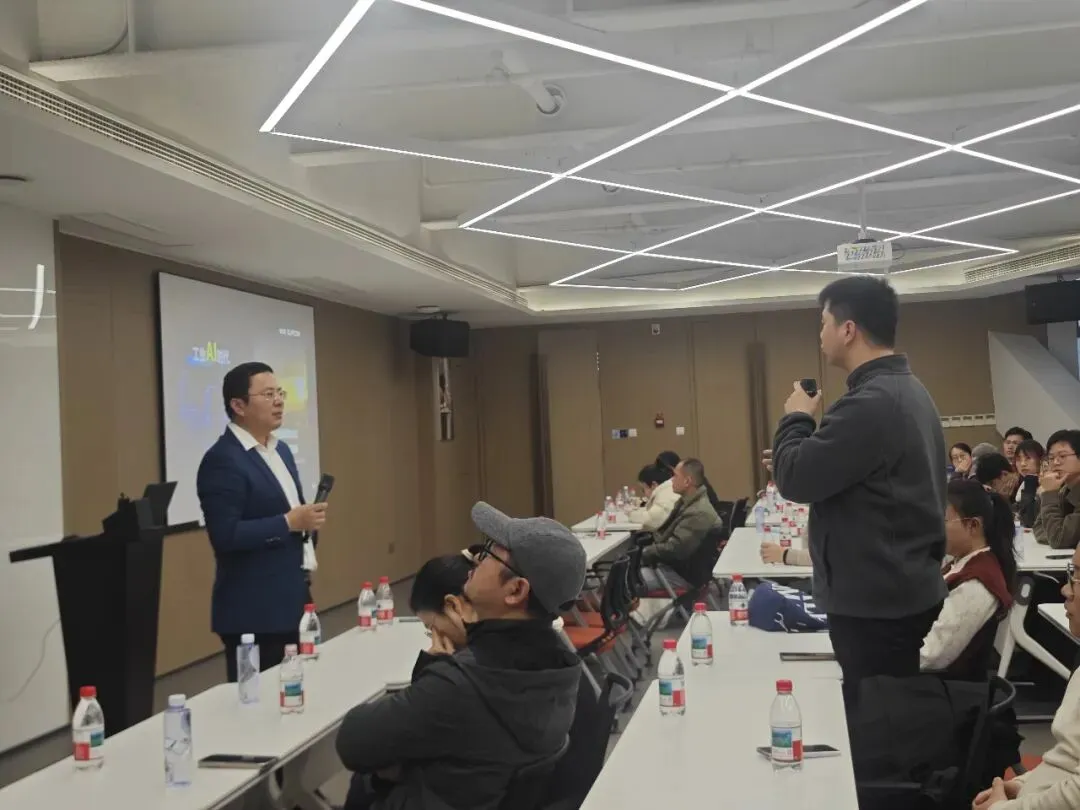 随后,中控技术质量流程副总裁朱建军以其丰富行业经验为参访团带来一场主题为“工业 AI赋能流程制造,迈向全自主运行工厂”的分享,从技术革新到行业趋势,从产品落地到团队建设,层层拆解工业智能化的核心命题。针对参访团关注的技术落地难点、行业拓展规划、数据安全防护等关键问题,朱建军结合丰富的行业案例与实战经验逐一回应,既有专业深度又具实操价值。