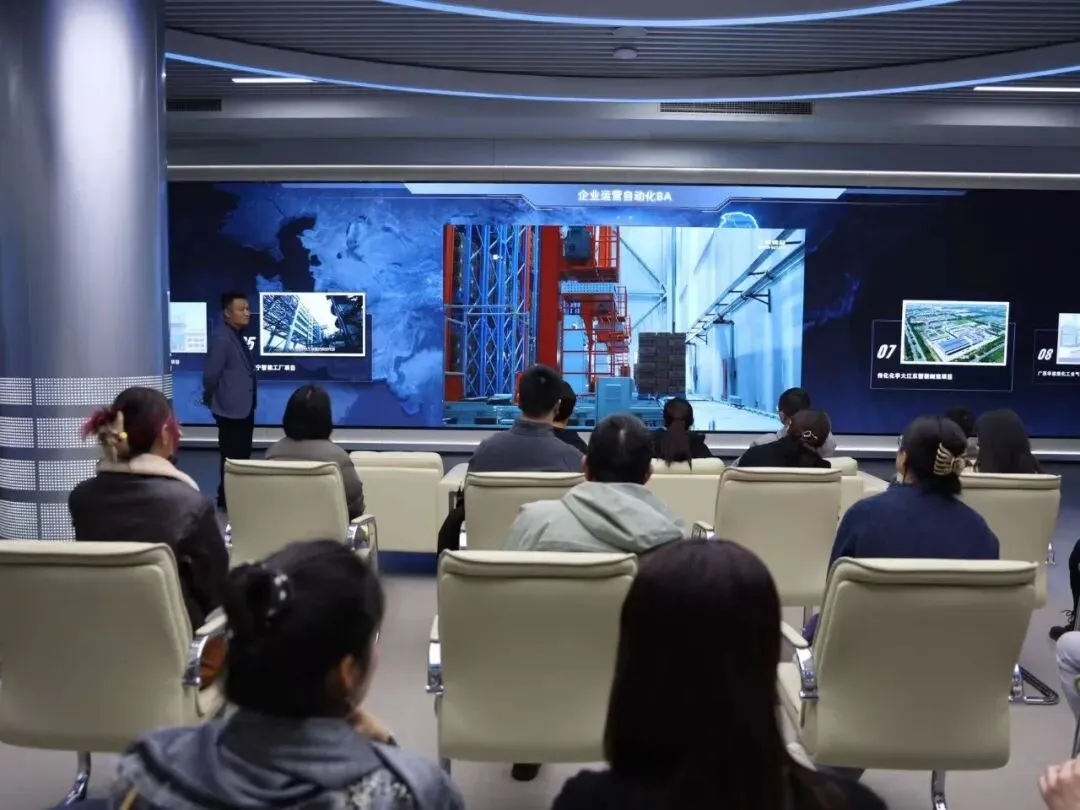 在中控技术交付部李洪磊校友的带领下,同学们走进中控创新体验中心,全方位感受流程工业自动化的技术革新脉络。从早期自动化控制系统到新一代通用控制系统,从TPT时序大模型的数据赋能到全自主运行的整体解决方案,参访团系统感受到了中控三十余年深耕行业的技术积淀。现场展示的石化化工、食品加工等多领域落地案例,清晰勾勒出工业生产从分散控制到一体化智能协同的演进路径,将“数据驱动、智能协同”的核心理念从抽象概念转化为可感可知的实践图景。