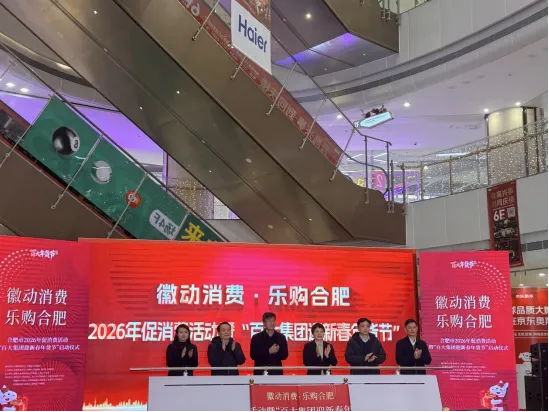 1月24日,由安徽省商务厅、合肥市人民政府指导主办,合肥市商务局、庐阳区人民政府、包河区人民政府主办,百大集团承办的“徽动消费•乐购合肥”2026年合肥市促消费系列活动在百大心悦城启动。安徽省商务厅副厅长张弘强、合肥市副市长王海霞等省市领导出席活动,安徽省信息家电行业协会作为支持单位,执行会长周保宇、常务副秘书长郭宝参加本次活动,为市民提供春节购物消费新热点和新场景。