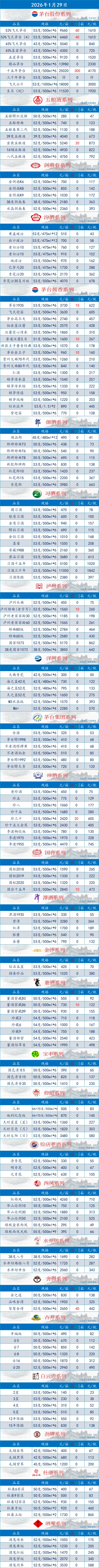 >百荣酒饮-今日中国白酒最新价格2026.1.29