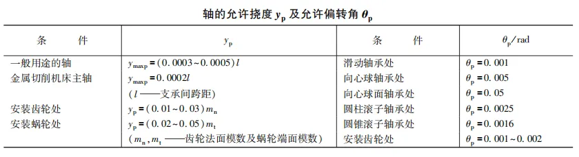 一般机械中轴的允许挠度 yp 及允许偏转角 θp 可按表选取。