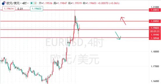 3.市场反应:欧元在回调至 1.1950-1.1960 区间时获得强劲买盘支撑,显示市场对欧元区经济前景信心增强;