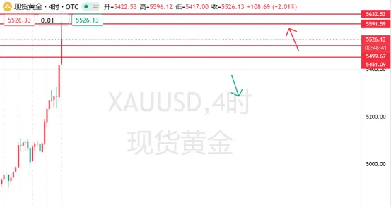 入场点1:5500-5510 区间企稳 (突破回踩确认),止损 5480,目标 5560→5590→5600;