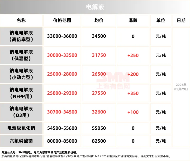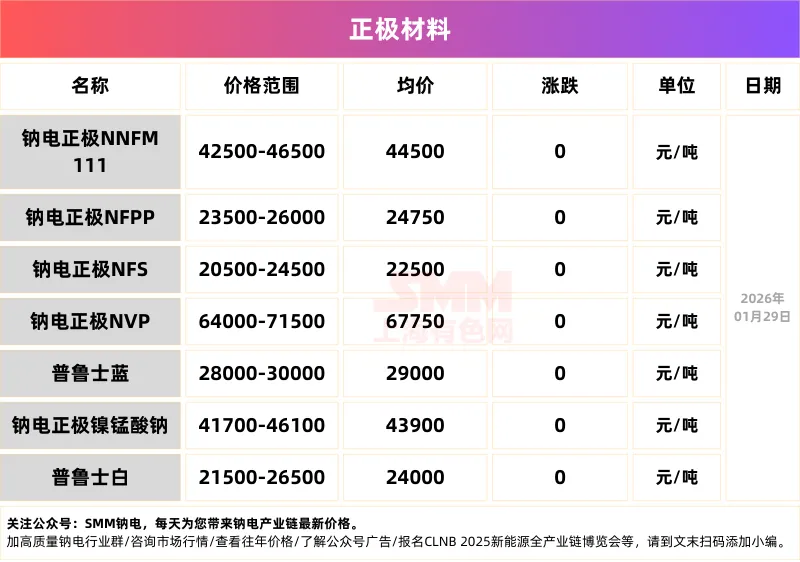 每日获取最新钠化合物、前驱体、正极材料、硬碳、电芯、电解液价格