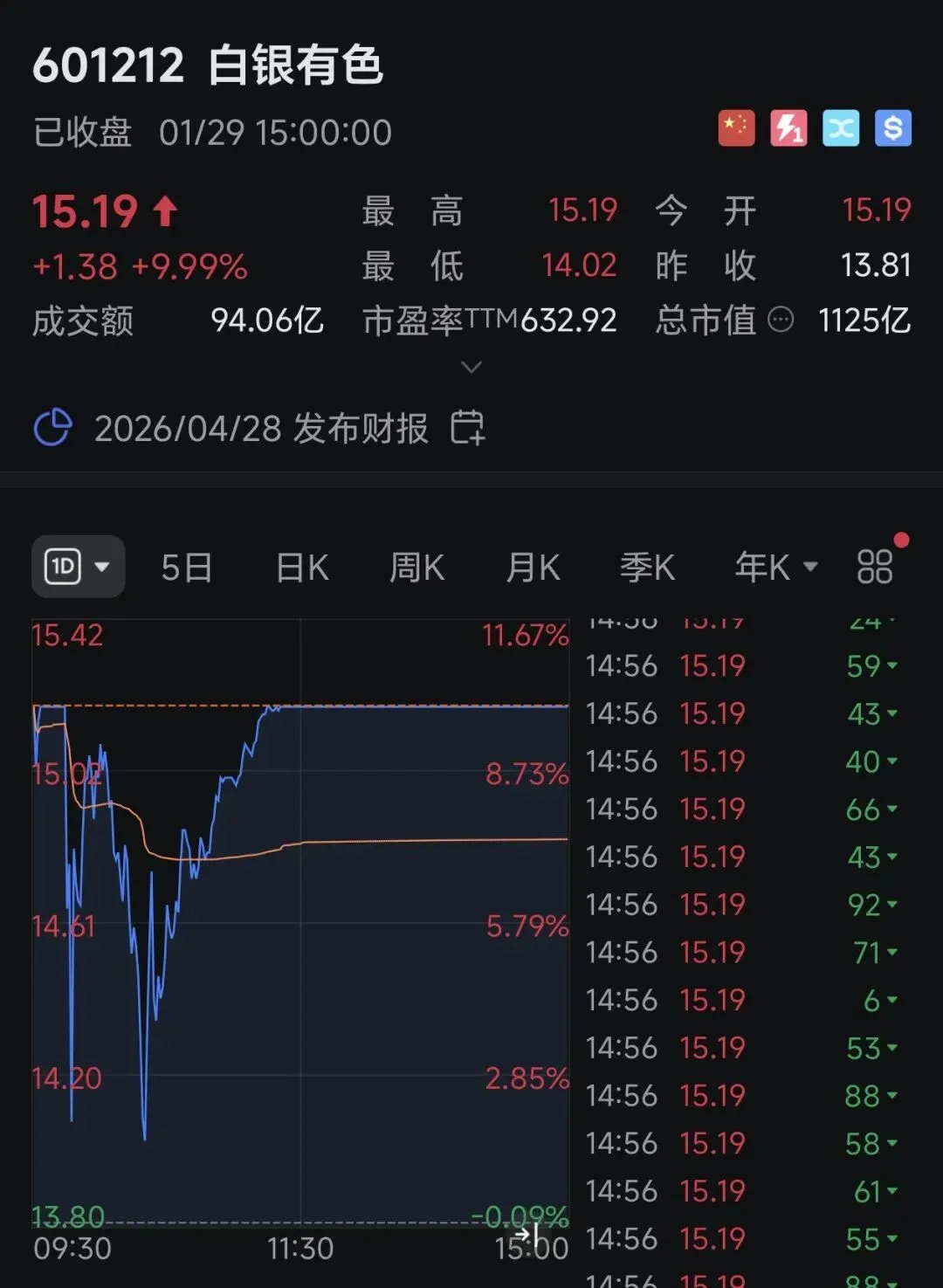 上午冲高后,下午明显回落,很多个股从涨停板打开,振幅超过10%。为什么?因为市场在担心"窗口指导"。这不是空穴来风——上期所最近已经多次上调白银保证金、限制开仓手数,还罕见地在盘中开罚单,对16名客户限制开仓和出金。这种监管信号,让资金不敢放开手脚。