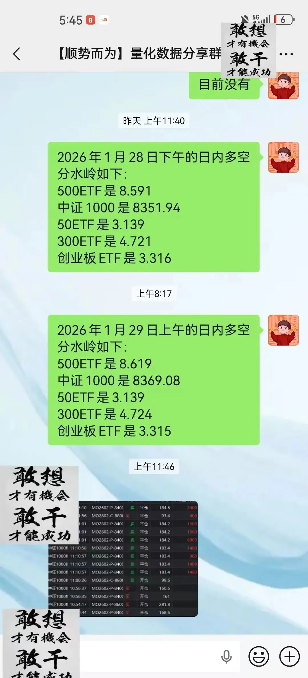 最近的日内多空分水岭量化数据都在期权闲聊群里发,早上和中午各发一次;