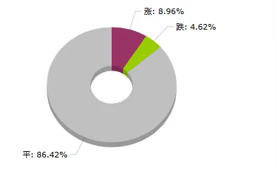 环比下降的商品共有16种,跌幅前3的产品分别为丁二烯(-4.35%)、次磷酸(-4.02%)、氯酸钠(-1.62%)。