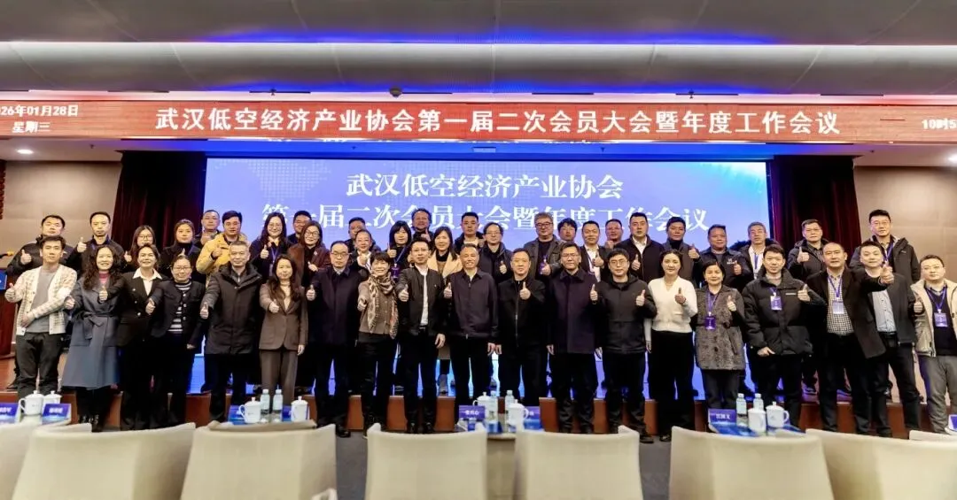 2026年1月28日,武汉低空经济产业协会2025年度工作会在武汉市规划研究院顺利召开。市发改委、市经信局、市委网信办等多部门相关领导,江岸区政府相关负责人,武汉城建集团、协会会员单位及高校学者代表齐聚一堂,以“政企学研”多方联动模式,共商武汉低空经济产业发展路径,为产业生态完善与能级提升按下“加速键”。