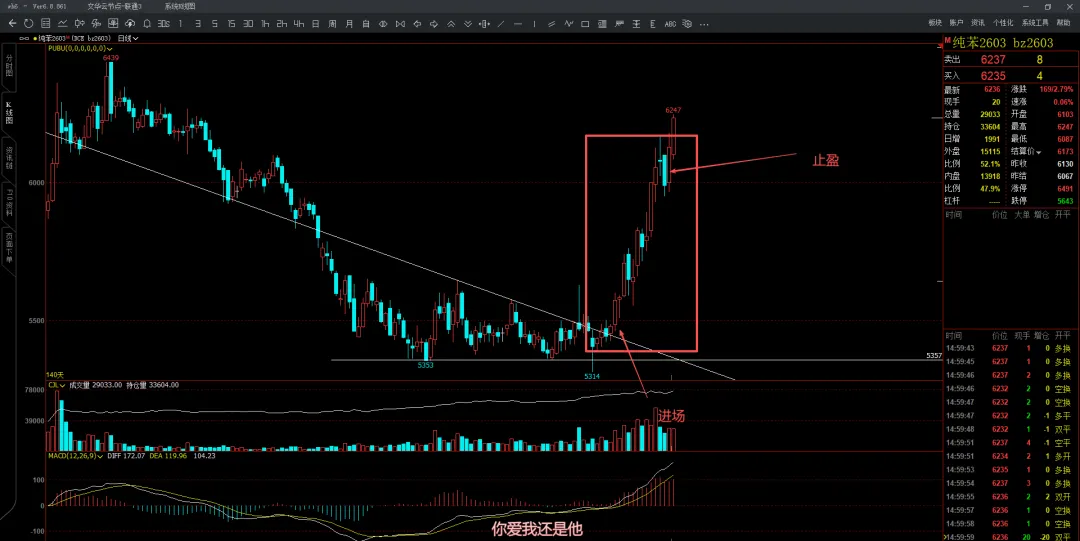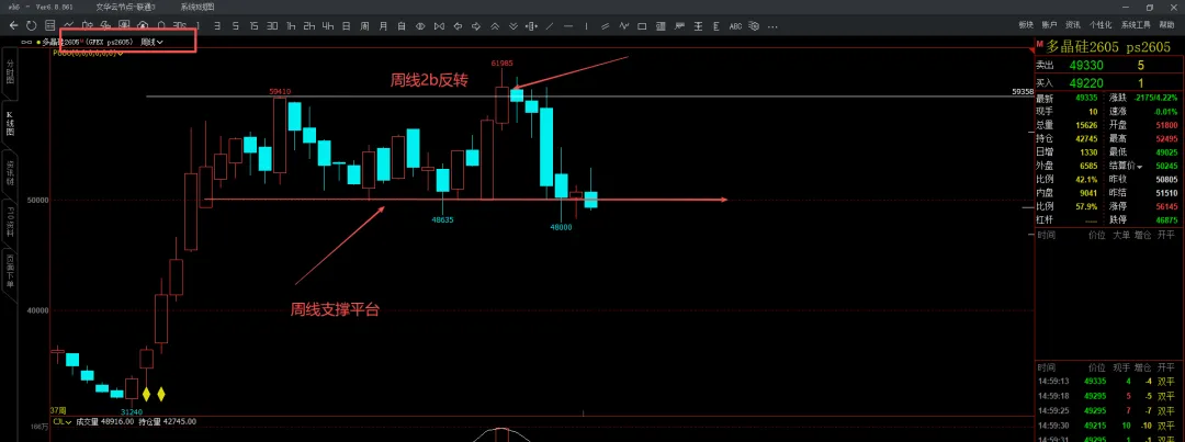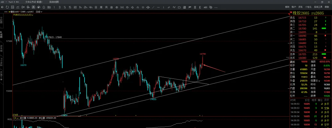 二月份庚寅月是丙午年的第一个月(2.4--3.4),2.4号立春当天就算正式进入了丙午年,丙午年是火气极纯的一年,火在五行中又代表着科技、能源等,这段时间有色金属的行情就是就是一个很好的例子:由于 AI算力需求、基本面的需求持续增加、供需结构失衡、宏观的经济周期等来推动着行情的走势。目前在追踪七个标的:多晶硅、螺纹钢、热卷、纯碱、玻璃、豆一、橡胶。在25号下午复盘的时候就发现橡胶这个标的从周线的角度来看起来的概率非常大,但是没想到这么快就给了进场的机会关于橡胶这个标的的预期暂时可能要给到17500--18000附近,同时持仓 的周期也会是比较久的多晶硅