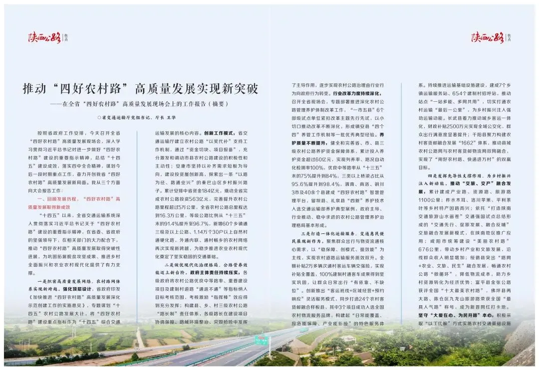 会议指出,“十四五”以来,在省交通运输厅的坚强领导下,全省公路行业坚持以习近平新时代中国特色社会主义思想为指导,锚定加快建设交通强国战略目标,紧扣高质量发展主题,统筹推进“十四五”公路发展规划攻坚落实,各项工作取得明显成效。五年来,全省普通国省干线公路新增通车1153.7公里,普通国道二级及以上、省道三级及以上比重均达70%以上,农村公路累计新改建完善提升超4.8万公里;全省新增80个乡镇通三级公路、1.49万个30户以上自然村通硬化路;持续开展农村公路隐患排查治理,农村公路路况水平稳步提升;省级“最美农村路”发展到20条;高速公路服务区充电设施实现全覆盖;全省普通国省干线公路累计改造危桥(隧)594座,整治事故多发等安全问题突出点段217处,实施灾害防治工程104处,修复公路水毁6209处;农村公路累计改造危桥480座,实施安防工程2.05万公里;建成省、市、县三级应急指挥中心106个,国家、省、市、县四级应急装备物资储备库151个,动态优化应急预案,平均应急响应时间缩短20%。
