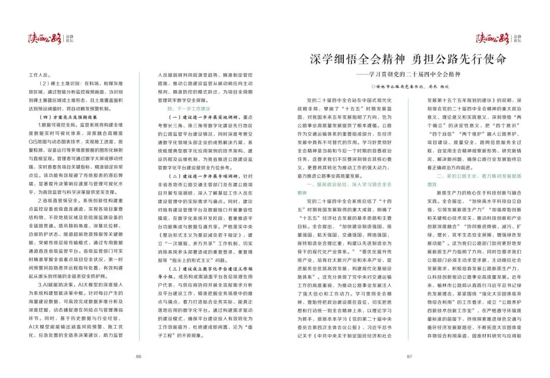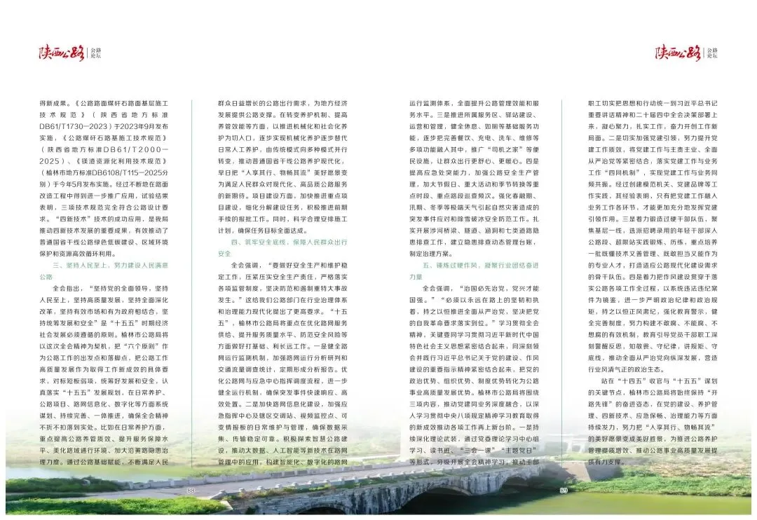 会议提出,“十五五”期间,全省公路行业要锚定交通强国建设目标,服务完善现代化综合交通运输体系建设,统筹高质量发展和高水平安全,以牢牢抓住“一条工作主线”、坚持“六大发展路径”、实施“五大重点工程”的“165”工作思路为牵引,突出一体化融合、安全化提升、数智化升级、绿色化转型,着力提升养护管理水平、行业管理效能、公路服务品质,努力为推动基本建成交通强国、奋力谱写陕西新篇、争做西部示范贡献公路力量。