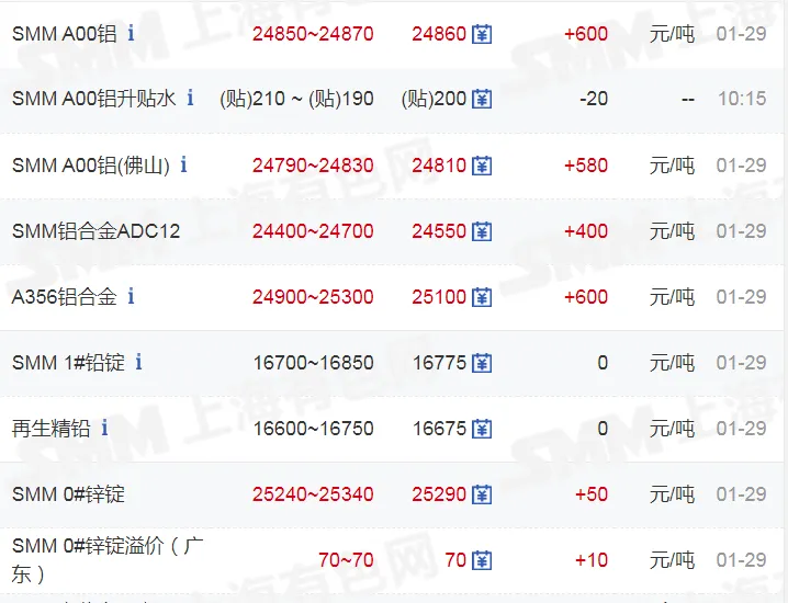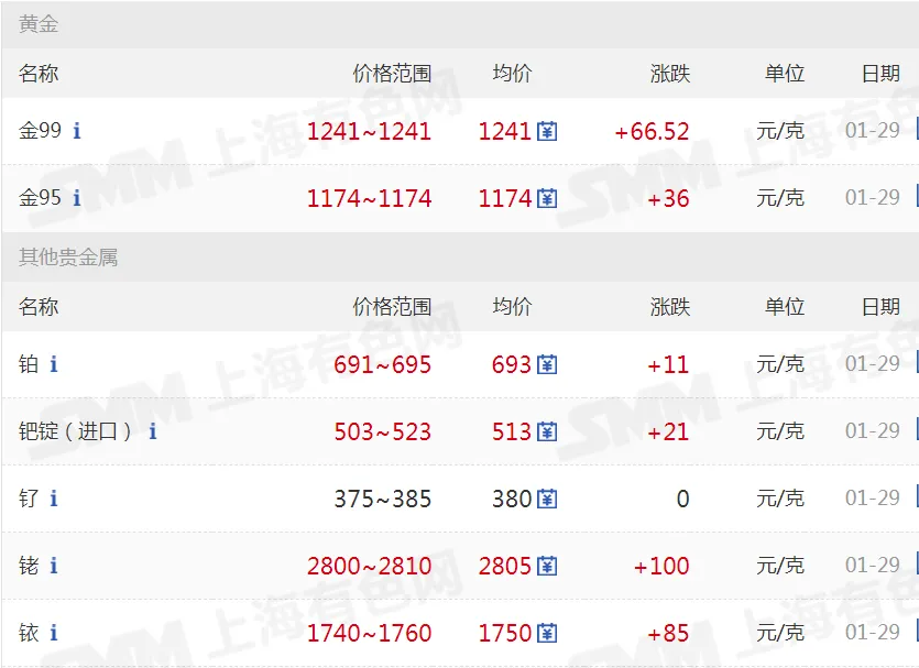 >20260129金银铜价格行情