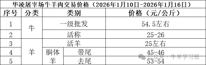 1月12日-1月18日牛市牛价: