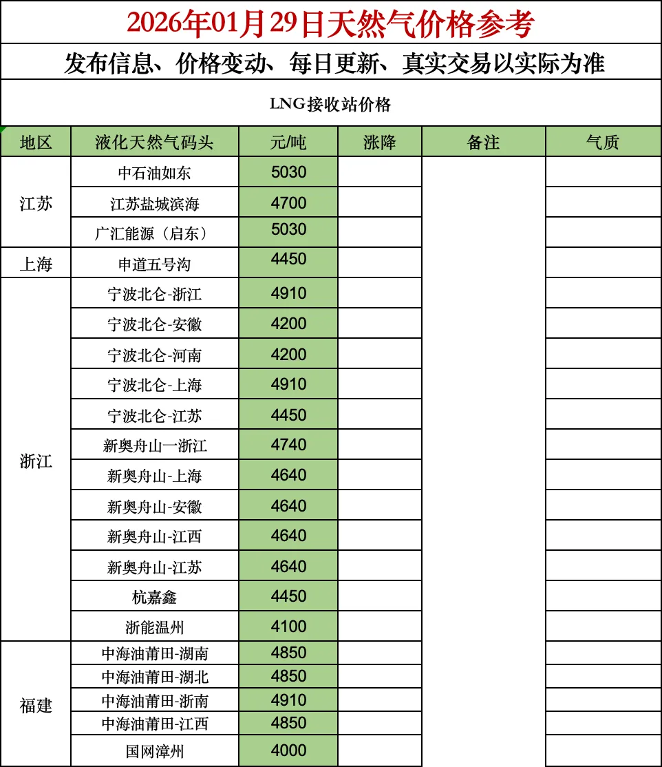 >2026.01.29 LNG价格播报