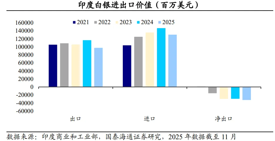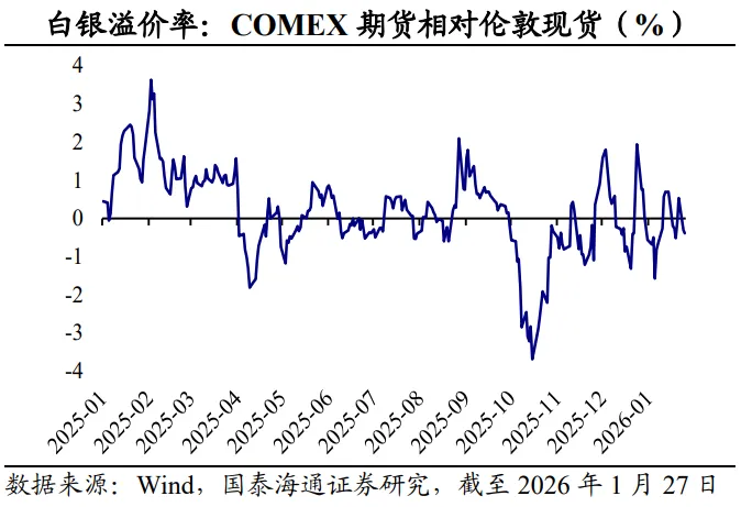 值得一提的是,区域沉淀会使“流通银”减少,改变库存结构。当伦敦现货极度短缺,出现高于纽约的高溢价,甚至推高白银的借贷成本时,交易商会将白银从纽约运至伦敦出售以赚取价差,溢价也随之缓解。这体现了市场对政策风险和即时套利机会的快速反应。但与之不同的是,2021年以来,印度通过进口持续囤积白银,实质上是将伦敦、纽约等全球核心仓库中的白银单向转移到了区域性库存中。与存放在伦敦金库、可用于支撑ETF赎回或租赁的白银不同,区域沉淀的白银退出了国际性的流通和金融交易体系,加剧现货市场的结构性紧张。