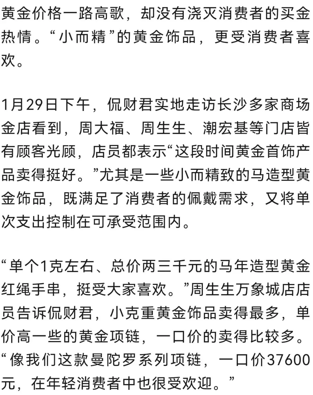 “小而精”的黄金饰品更受欢迎