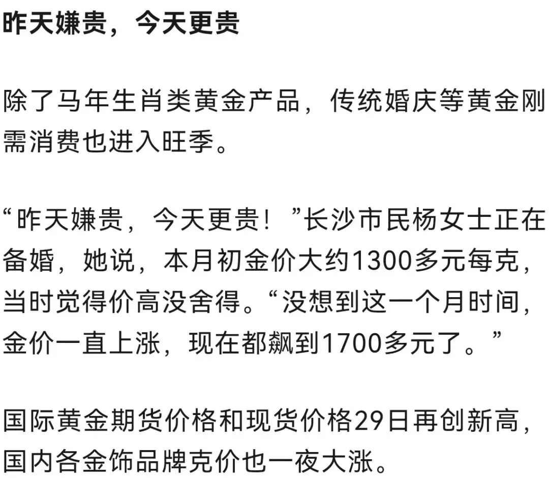 农历马年春节临近,黄金消费市场也迎来传统旺季。金价高位运行,湖南黄金消费市场如何?金价还会继续涨么?