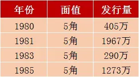 5角硬币的发行量如下