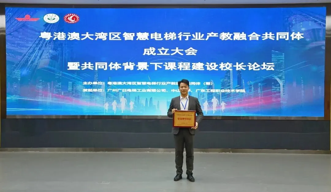 ▲当选粤港澳大湾区智慧电梯行业产教融合共同体常务理事单位