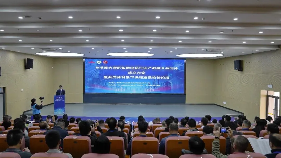 2025年11月28日,粤港澳大湾区智慧电梯行业产教融合共同体成立大会暨共同体背景下课程建设校长论坛在广东工程职业技术学院省职教城校区举行。我校副校长彭宏与全国100多家院校、行业、企业等领导、专家学者齐聚一堂,共同见证这一赋能智慧电梯行业发展的重要时刻。