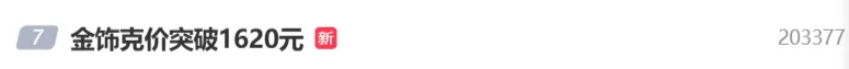 >金饰克价,涨至1620元