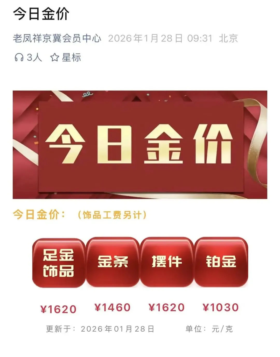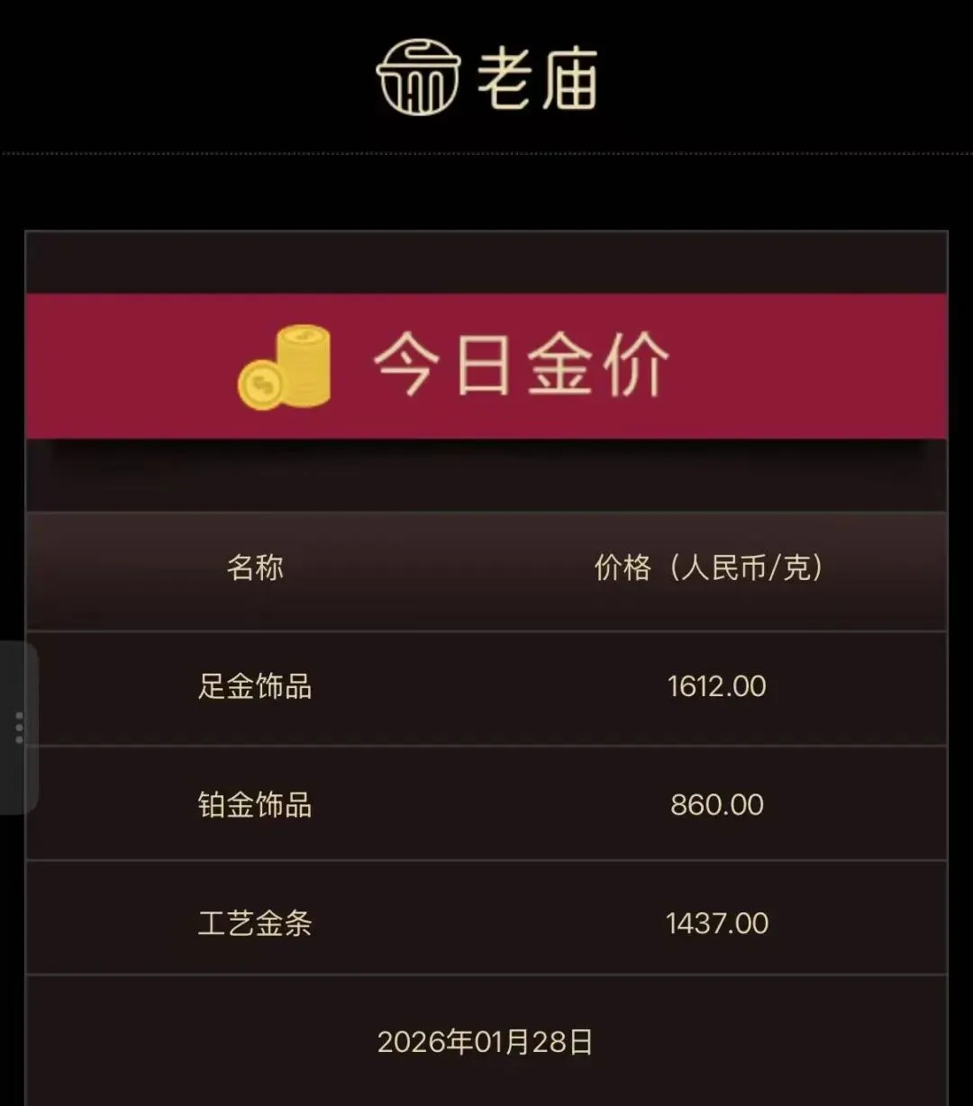 老庙今日金价