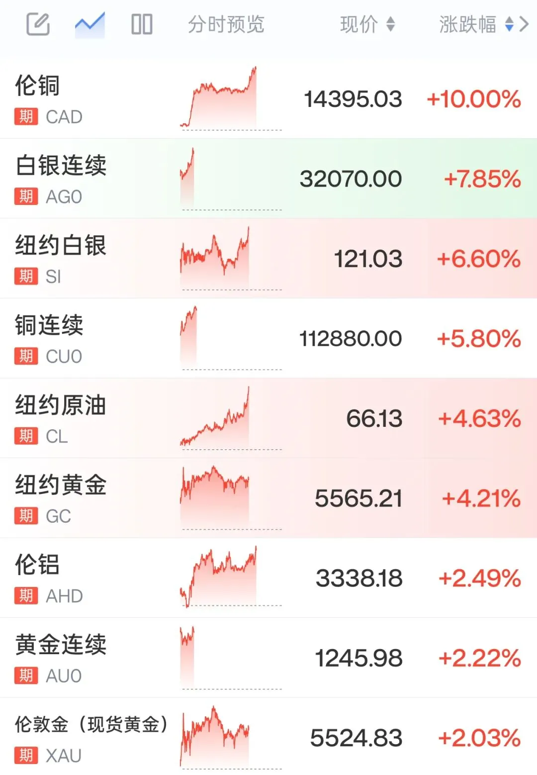 有色金属加速上涨 国际铜价涨超10%、沪银夜盘涨超8%