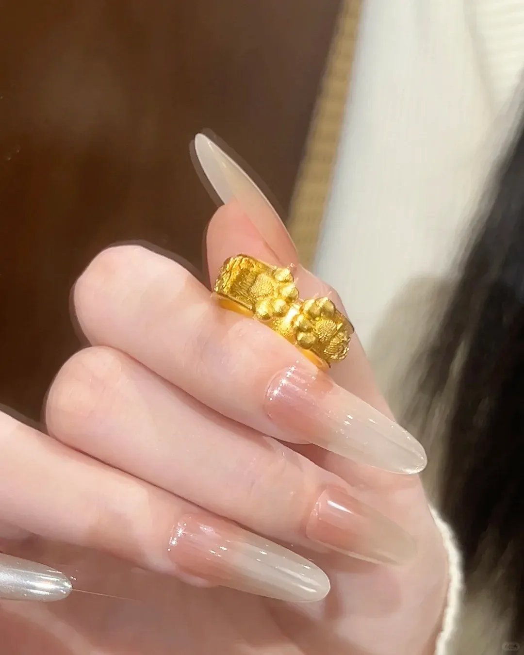 选的时候要注意 先想清楚你是冲着佩戴还是保值 如果更在意保值 那就尽量选足金素圈素链 克重纯度更直观 设计越简单 回收越不会太亏 然后如果你是为日常出片和搭配舒适度 那18K真的很友好 颜色耐看 不容易变形 然后钻托类 戒指戒臂类都更牢固一点 另外 3D硬金这种工艺 看起来有量感 但其实轻 所以买来是为了好看很合适 回收就别抱期待了