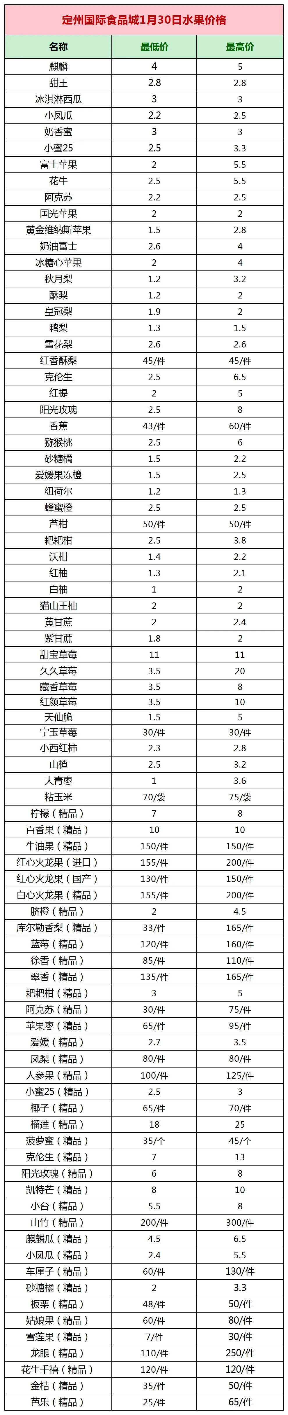 【民以食为天,365天,天天无淡季。为方便广大商户进货采买,获取最新蔬果信息,此微信号每日为您提供定州国际食品城蔬果行情。以下果蔬价格数据计量单位均为元/斤!果蔬价格行情波动比较频繁,请以实际购买单价为准!】