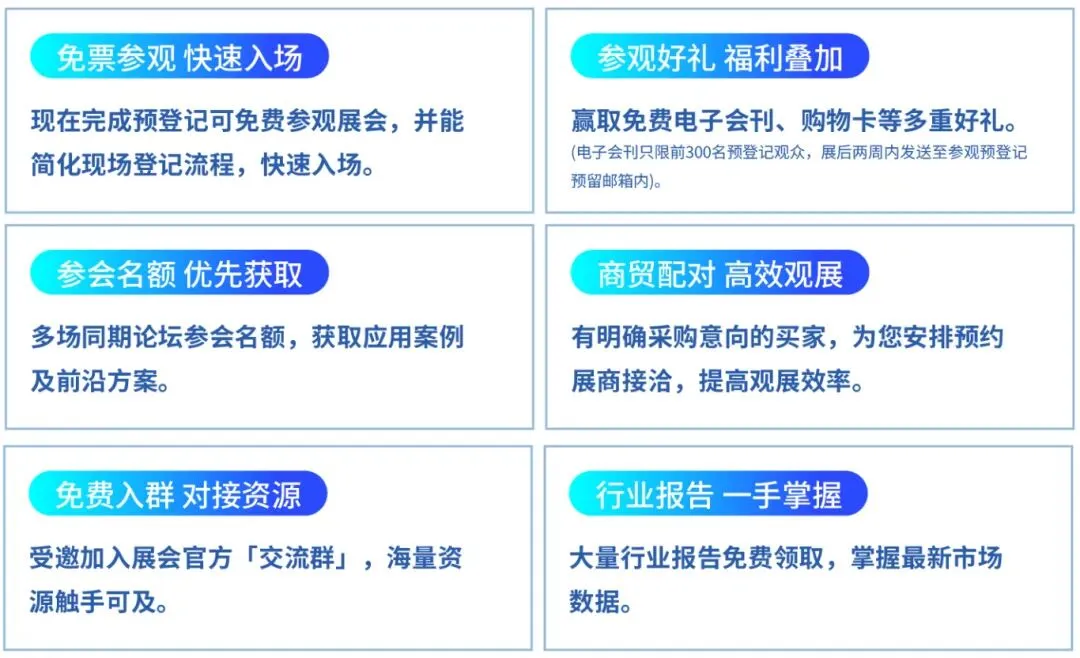 预约参观通道现已开启,诚邀您共同探索本年度智能科技前沿!完成预登记,即可享受以下权益: