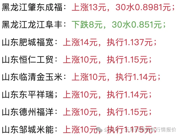 吉林榆树新玉米出库价格2210-2240元/吨;中粮生化水分15%三等新粮挂牌收购价2170元/吨。