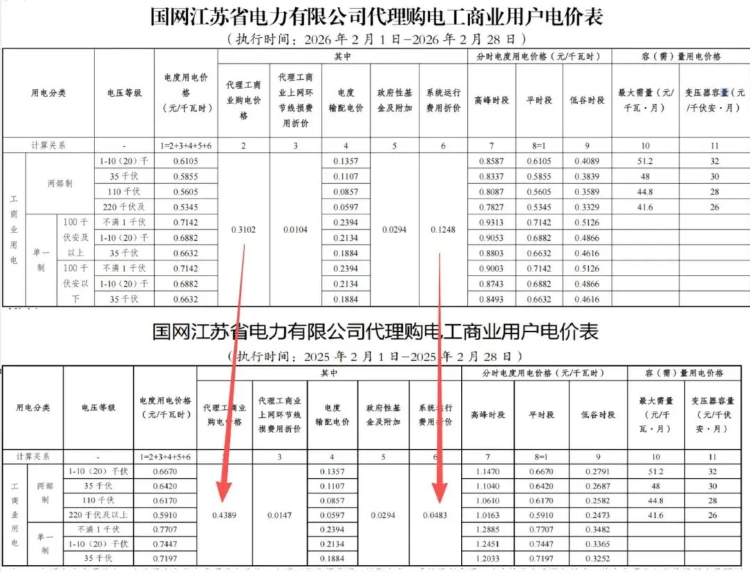 2026年2月江苏国网代理购电价格较2025年显著下行,核心是新能源全量入市、春节供需逆转与本地电价政策调整三重因素叠加的结果,为工商业用户带来实实在在的降本红利。