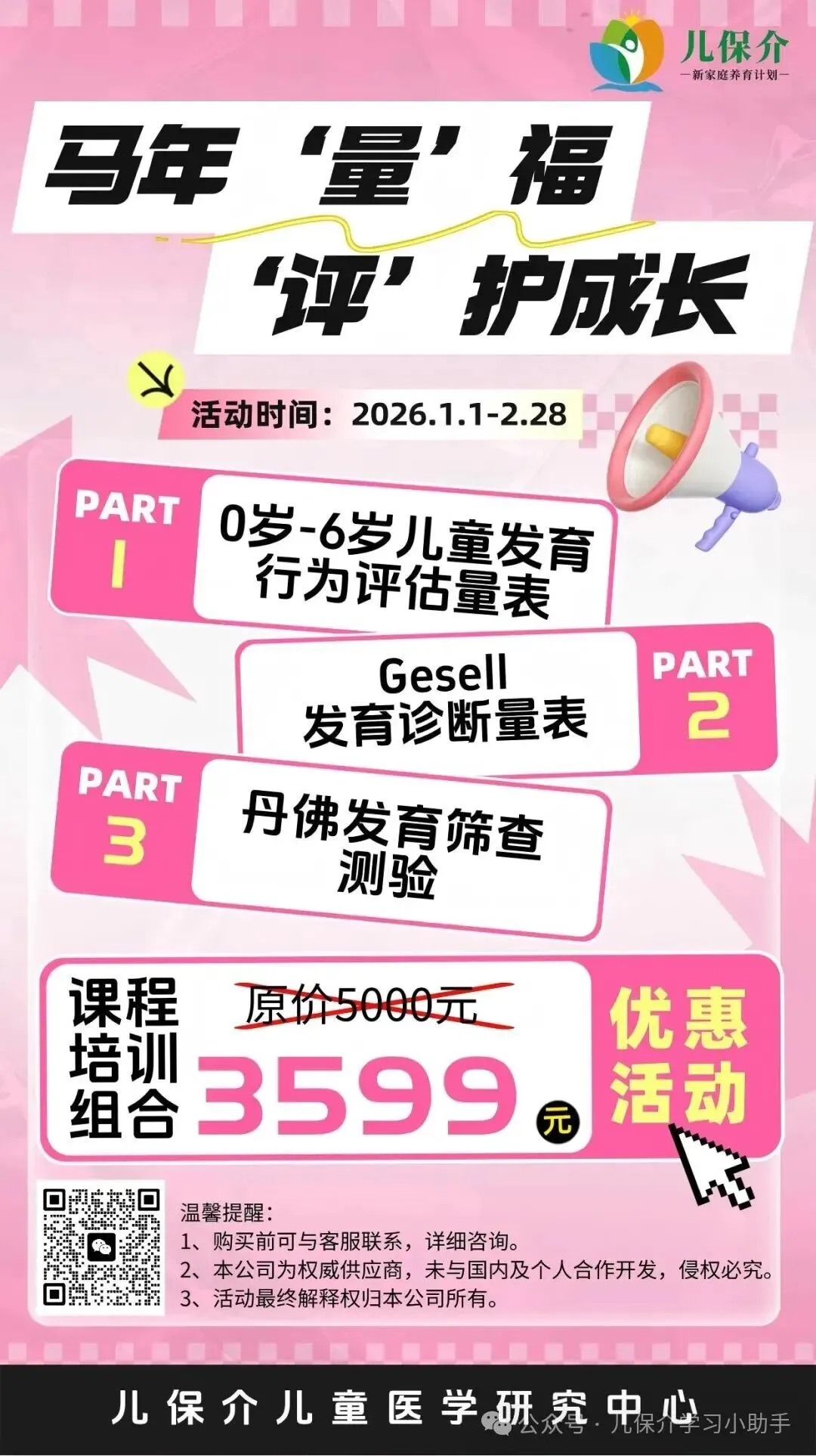 为帮助各地儿科和儿童保健人员提高对儿童生长发育评估的能力,提升儿童保健服务水平,儿保介儿童医学研究中心联合北京阳光未来儿童医学研究中心将举办“儿心量表II和Gesell量表、DDST量表”职业技能联合培训班。