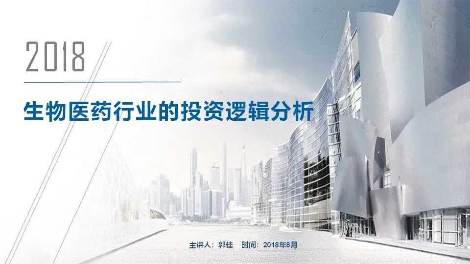 本文来自郭佳博士的培训讲义《2018年生物医药行业的投资逻辑分析》,以下为PPT正文,希望能对投资生物医药行业的伙伴有一定帮助。