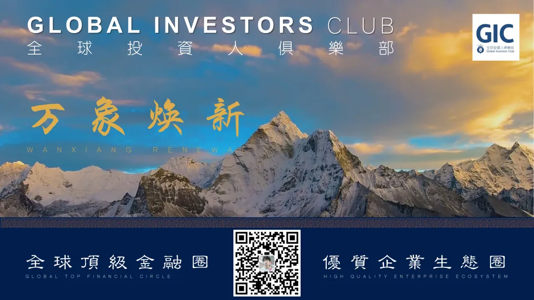 欢迎全球科技、消费、地产、医疗、农业、能源、环保、教育、文化、投行、基金、券商、信托、银行、保险、租赁、投资等产业及金融精英关注全球投资第一品牌-全球投资人俱乐部,寻找优质项目、资金及获得全球顶级圈层,申请成为战略合伙人,共同操盘顶级优质项目,请联系GIC助手(GIC-service)。添加微信请注明:地区-企业-职位-姓名)