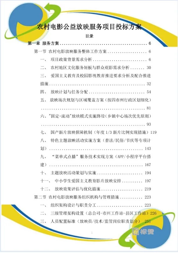 农村电影公益放映服务项目投标方案